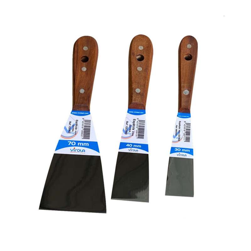 Espátula acero templado inox de gran calidad y flexibilidad. Mango madera tropical. Triple remache en mango. Acero en todo el cuerpo del mango