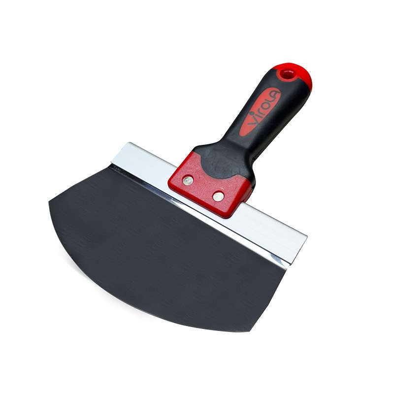 Espátula inox ideal para cargar masilla directo del cubo gracias a su forma circular. Gran resistencia y con mango ergonómico para un agarre perfecto.